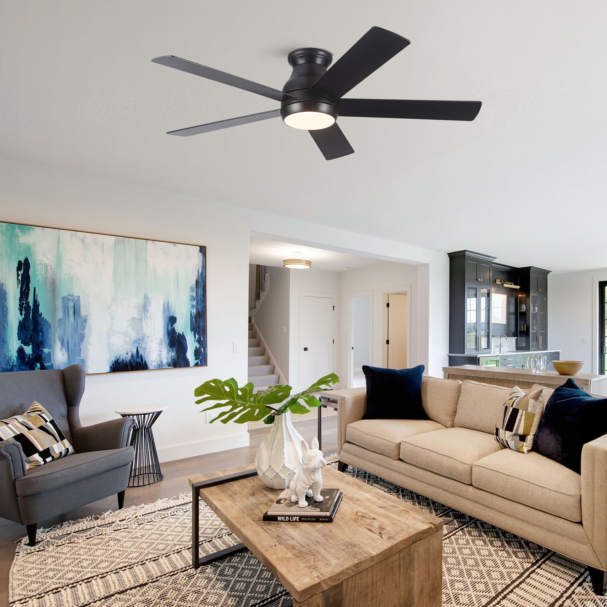 YUHAO 52 in. Indoor Integrated LED Matte Black Low Profile Ceiling Fan with Reversible DC Motor and 5 Plywood Blades