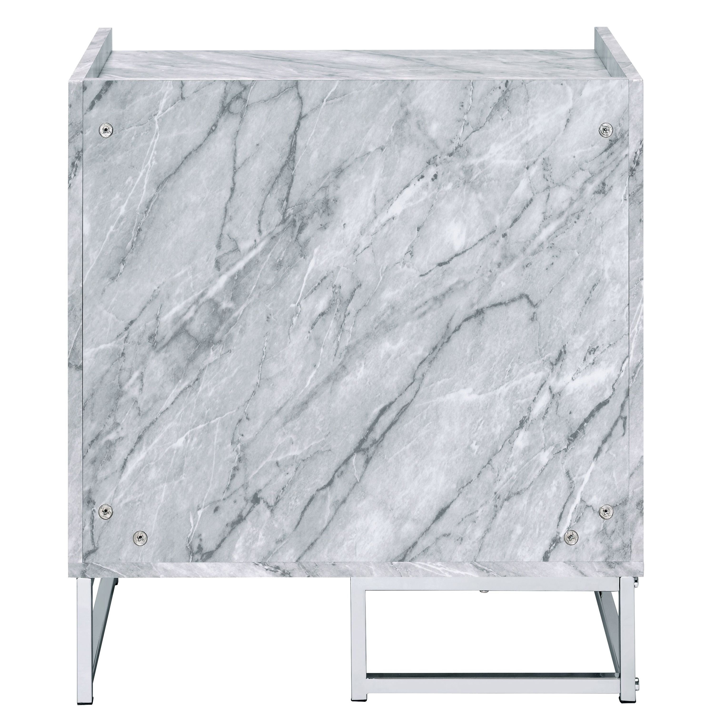 White Printed Faux Marble and Chrome Accent Table