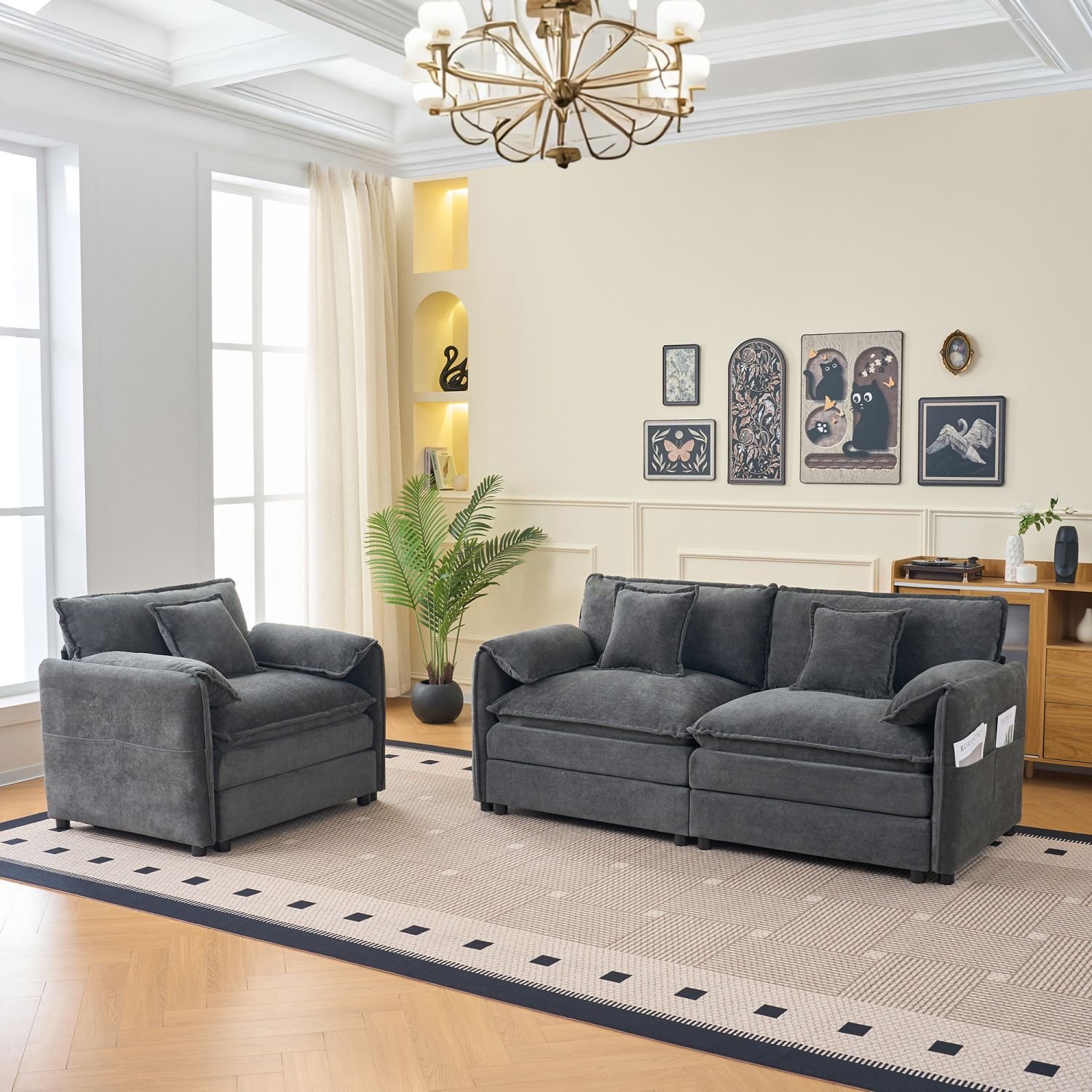 Ultimate Comfort & Softness – Upholstered in premium chenille fabric, this sofa is soft, breathable, and wrinkle-resistant. The dual-layer cushioned seats and high-resilience foam provide exceptional support and comfort, making every seating experience a delight.