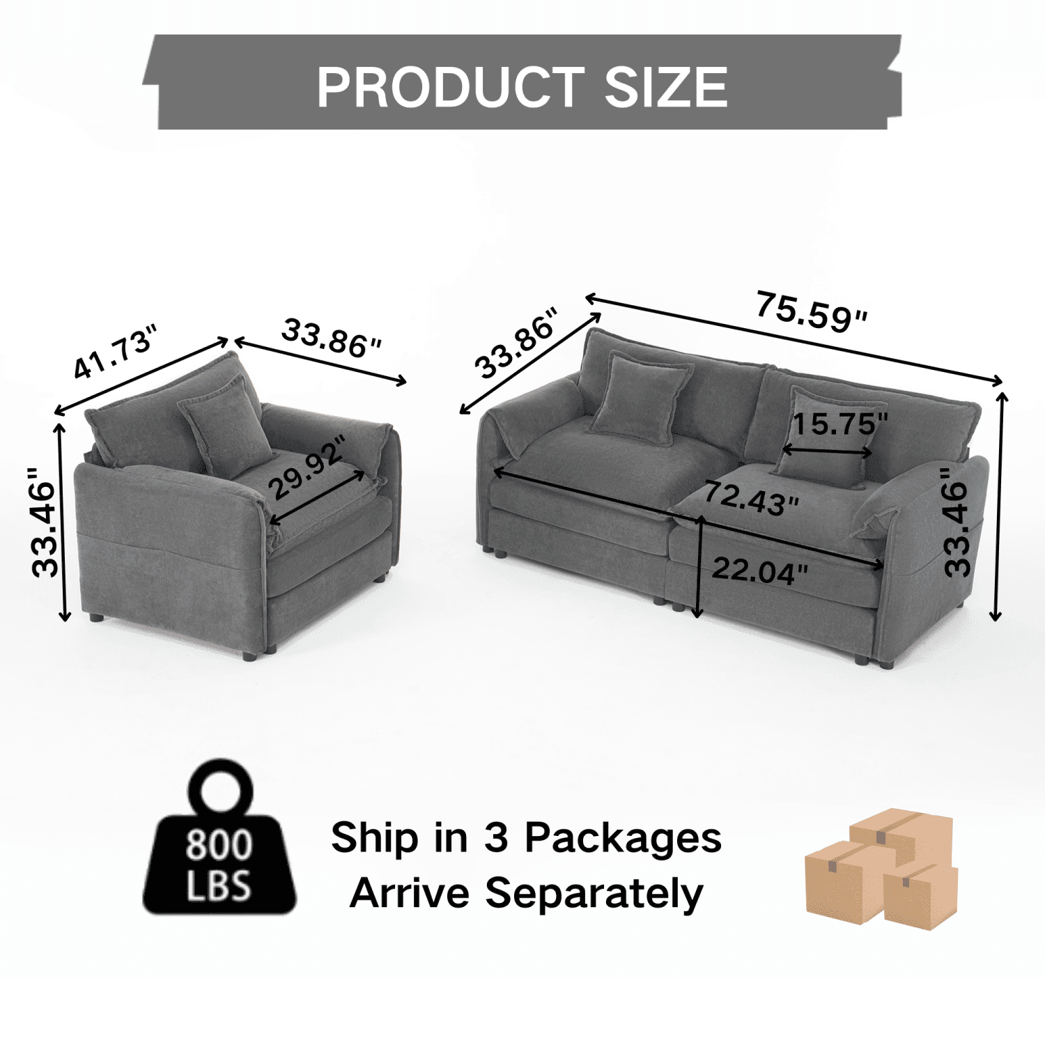 Shipping Reminder: This sofa ships in 3 separate packages, which may not arrive at the same time. Please allow some time for all packages to be delivered. If you have any questions, feel free to contact our customer support. Thank you for your patience and understanding!